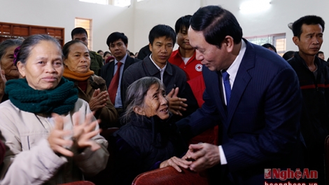 ປະທານປະເທດ ເຈິ່ນດ້າຍກວາງ ຢ້ຽມຢາມອວຍພອນປີໃໝ່ຢູ່ແຂວງ ເງ້ອານ
