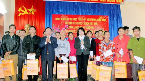 ຕອນເຊົ້າວັນທີ 13/1, ທ່ານປະທານປະເທດ ເຈີ່ນດ້າຍກວາງ ພ້ອມກັບຄະນະປະຕິບັດງານໄດ້ລົງຢ້ຽມຢາມ, ມອບຂອງຂວັນໃຫ້ບັນດາຄອບຄົວນະໂຍບາຍ