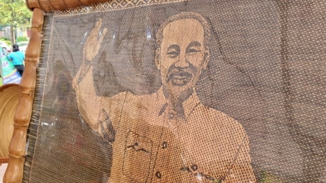 ຜູ້ສ້າງພາບເຄິ່ງຄີງປະທານ ໂຮ່ຈີມິນ ດ້ວຍການສານໄມ້ໄຜ່