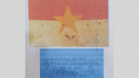 (VOVWORLD) -ທຸງປົດປ່ອຍຖືກປັກໃສ່ຫຼັງຄາຂອງກອງບັນຊາການທະຫານຂອງສັດຕູທີ່ນະຄອນ ບວນມາທ້ວດ ແຂວງ ດັກລັກ ໃນບັນຮົບ ເຕິຍງວຽນ ປີ 1975, ແມ່ນຮ່ອງຮອຍທີ່ລະນຶກທີ່ສັກກາລະບູຊາ ແມ່ນຄວາມເອກອ້າງທະນົງໃຈຂອງປະຫວັດສາດ ຫວຽດນາມ. ໃນທຸງຜືນນັ້ນກໍ່ມີແຖວຕົວໜັງສືພິເສດ ໂດຍອ້າຍທະຫານ ຮວ່າງຟຸກຮຶງ ໄດ້ຈົດບັນທຶກໄວ້, ເປັນຂີດໝາຍໄຊຊະນະຂອງກອງກຳລັງ ບັກຖາຍ ໃນເວລາ 11 ໂມງເຊົ້າຂອງວັນທີ 11 ມີນາ ປີ 1945. ພາຍຫຼັງ 50 ປີ, ເລື່ອງລາວກ່ຽວກັບທຸງຜືນນັ້ນ ຍາມໃດກໍ່ຖືກນັກຮົບເກົ່າ ຮວ່າງຟຸກຮຶງ ເຕື້ອງເຖິງດ້ວຍຄວາມເປັນກຽດ