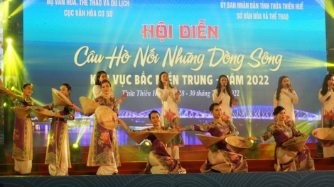(VOVWORLD) -ງານປະກວດຂັບລຳທຳເພງພື້ນເມືອງເຊື່ອມຕໍ່ບັນດາແມ່ນ້ຳເຂດຕອນເໜືອພາກກາງປີ 2022 ຫາກໍ່ຈັດຂຶ້ນຢູ່ແຂວງເທື່ອທຽນເຫວ້. ນີ້ແມ່ນເຫດການວັດທະນະທຳທີ່ເປັນເອກະລັກນອນໃນຂອບເຂດງານບຸນລະດູໃບໄມ້ຫຼົ່ນ - Festival ເຫວ້ 2022 ປະກອບສ່ວນອະນຸລັກໂຄສະນາບັນດາທຳນອງເພງພື້ນເມືອງພາກກາງຫວຽດນາມ