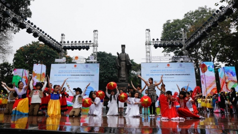 (VOVWORLD) - ລາຍການສະແດງດົນຕີສາກົນ ພາຜູ້ຊົມໄປທ່ຽວອ້ອມໂລກ Around the world ແມ່ນຫົວຂໍ້ຂອງບັນດາລາຍການສະແດງສິລະປະ ທີ່ຈັດຂຶ້ນໃນຕອນຄໍ່າວັນທີ 26 – 27 ມີນາ ຜ່ານມາ ຢູ່ໂຮງລະຄອນໃຫຍ່ຮ່າໂນ້ຍ ດ້ວຍການເຂົ້າຮ່ວມຂອງບັນດານັກສິລະປິນ, ນັກເສບດົນຕີທີ່ມີຊື່ສຽງຂອງຫວຽດນາມ ແລະ ສາກົນ. ລາຍການດັ່ງກ່າວ ເໝືອນດັ່ງຜະລິດຕະພັນແຜ່ນໃຫຍ່ທີ່ໄດ້ມາຈາກການປະກອບພາບທີ່ຍອດຍິ່ງຂອງພື້ນຖານວັດທະນະທໍາ, ພາຜູ້ຊົມໄປທ່ຽວທົ່ວໂລກ ຜ່ານສຽງດົນຕີ.