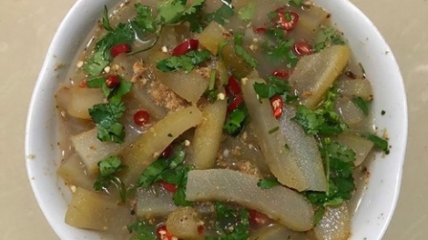 (VOVWORLD) -ເຂດພູພຽງ ມົກເຈົາ, ແຂວງ ເຊີນລາ ທາງພາກເຫນືອ ຫວຽດນາມ ແມ່ນສະຖານທີ່ທີ່ມີຊາວເຜົ່າຜູ້ໄທ ດຳລົງຊີວິດເປັນຈຳນວນຫລວງຫລາຍ, ບໍ່ພຽງແຕ່ເປັນການຮູ້ຈັກເຖິງວ່າ ແມ່ນເຂດດິນແດນມີດອກໄມ້ຫລາຍຊະນິດມີສີສັນຫລາກຫລາຍທີ່ສວຍສົດງົດງາມ ແລະ ມີອາກາດປອດໂປ່ງເຢັນສະບາຍເທົ່ານັ້ນ ຫາກຍັງມີບັນດາເຍື່ອງອາຫານທີ່ແຊບນົວ ແລະ ເປັນຫນ້າສົນໃຈຂອງແຂກທ່ອງທ່ຽວນຳອີກ. ໃນບັນດາເຍື່ອງອາຫານຂອງຊາວເຜົ່າຜູ້ໄທ ຢູ່ ມົກເຈົາ ນັ້ນ, ເຍື່ອງອາຫານສົ້ມຫນັງຄວາຍ ກໍແມ່ນເຍື່ອງອາຫານຫນຶ່ງທີ່ແຊບນົວ ເຊິ່ງເປັນເຍື່ອງອາຫານພິເສດ ຢູ່ດິນແດນແຫ່ງນີ້.