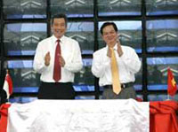 ![]() ທ່ານນາຍົກລັດຖະມົນຕີ ຫວຽດນາມ Nguyen Tan Dung ແລະ ທ່ານນາຍົກລັດຖະມົນຕີ ສິງກະໂປ ຫລີຊຽນຫລົງ