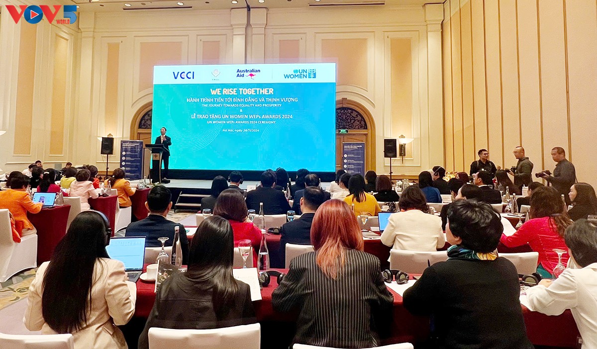 ຕອນເຊົ້າວັນທີ 28 ພະຈິກ, ຢູ່ຮ່າໂນ້ຍ, ອົງການ ສປຊ ເພື່ອຄວາມສະເໝີພາບລະຫວ່າງ ຍິງ - ຊາຍ ແລະ ການມອບສິດໃຫ້ແກ່ແມ່ຍິງ ຢູ່ ຫວຽດນາມ (UN Women) ສົມທົບກັບ ສະຫະພັນການຄ້າ ແລະ ອຸດສາຫະກຳ ຫວຽດນາມ (VCCI) ຈັດພິທີມອບລາງວັນ “ປະຕິບັດຫຼັກການມອບສິດໃຫ້ແກ່ແມ່ຍິງ” UN Wonmen Weps Award 2024” ໃຫ້ແກ່ 17 ວິສາຫະກິດ ຫວຽດນາມ. ນີ້ແມ່ນບັນດາວິສາຫະກິດທີ່ມີຫຼາຍຂໍ້ລິເລີ່ມປ່ຽນແປງໃໝ່ ແລະ ປະກອບສ່ວນຢ່າງຕັ້ງໜ້າເຂົ້າໃນການຊຸກຍູ້ຄວາມສະເໝີພາບລະຫວ່າງຍິງ - ຊາຍ ຢູ່ວິສາຫະກິດ, ໃນຕະຫຼາດ ແລະ ບ່ອນສາທາລະນະ, ມຸ່ງໄປເຖິງຄວາມວັດທະນາຖາວອນ ແລະ ການພັດທະນາແບບຍືນຍົງຢູ່ ຫວຽດນາມ.