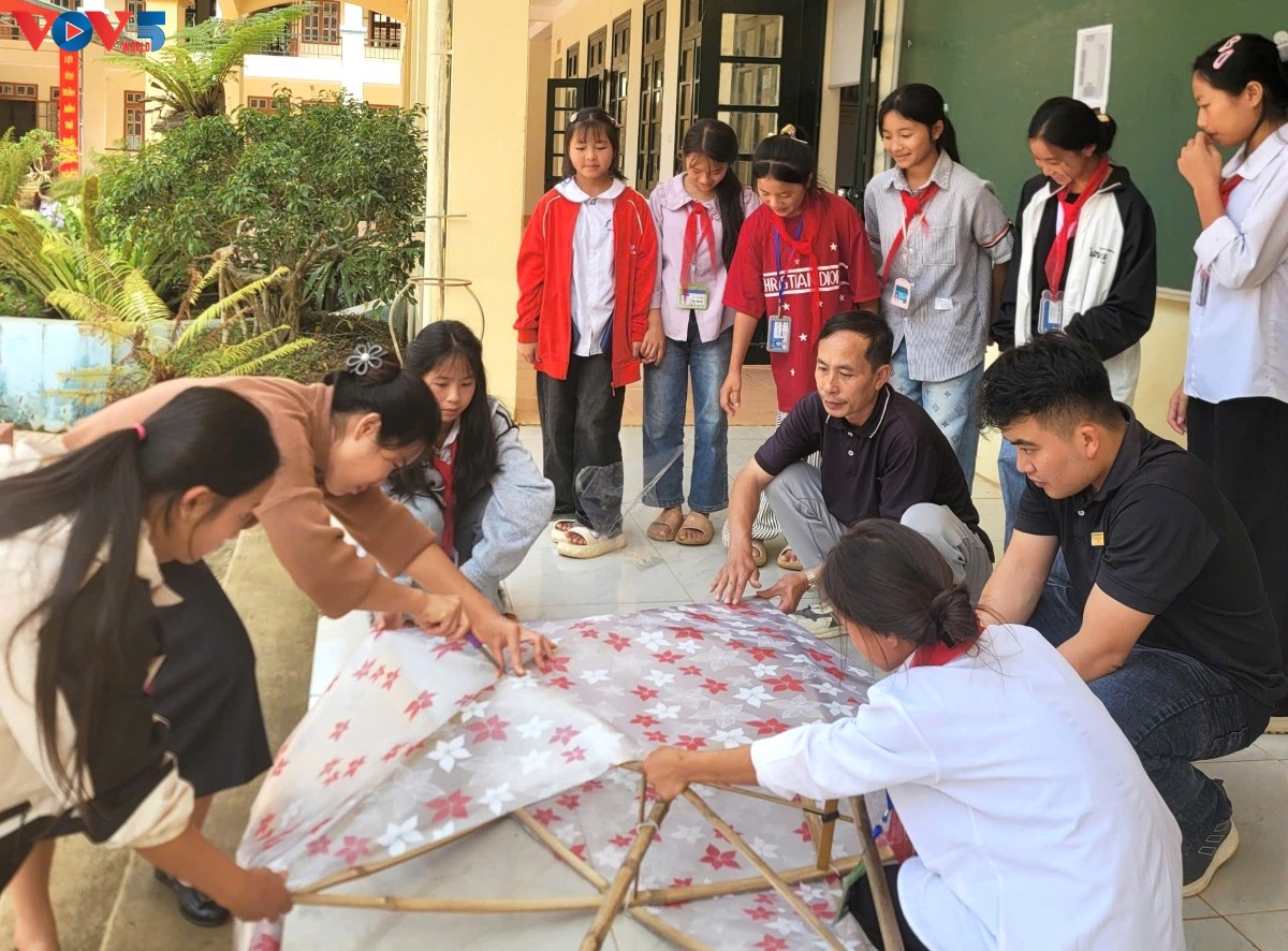 “ນ້ອງຊືວ່າ ຊຸ່ງທິເຕົ໊າ, ນັກຮຽນຂອງໂຮງຮຽນ, ພວກນ້ອງລ້ວນແຕ່ຫ່າງໄກຈາກບ້ານ, ເປັນນັກຮຽນເຄິ່ງກິນນອນ ກັບບັນດາຄູອາຈານ, ໃນໂອກາດວັນບຸນໄຫວ້ພະຈັນນີ້ ພວກນ້ອງໄດ້ຕ້ອນຮັບພ້ອມກັບບັນດາຄູອາຈານ, ພວກເພື່ອນໃນໂຮງຮຽນ. ພວກນ້ອງໄດ້ເຮັດໂຄມໄຟຮູບດາວ, ສະແດງສິລະປະໃນຄ່ຳຄືນວັນບຸນໄຫວ້ພະຈັນ, ມ່ວນ ແລະ ມີຄວາມກະຕືລືລົ້ນທີ່ສຸດ”.