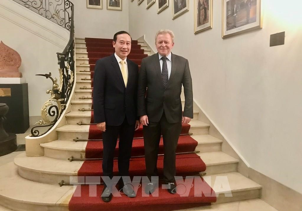 ທ່ານ ຫງວຽນວັນຖາວ ເອກອັກຄະລັດຖະທູດ - ຫົວໜ້າຄະນະຜູ້ຕາງໜ້າ ຫວຽດນາມ ປະຈຳ ອີຢູ ແລະ ຂ້າຫຼວງໃຫຍ່ຮັບຜິດຊອບບັນຫາກະສິກຳຂອງ ອີຢູ Janusz Wojciechowski. (ພາບ:TTXVN)