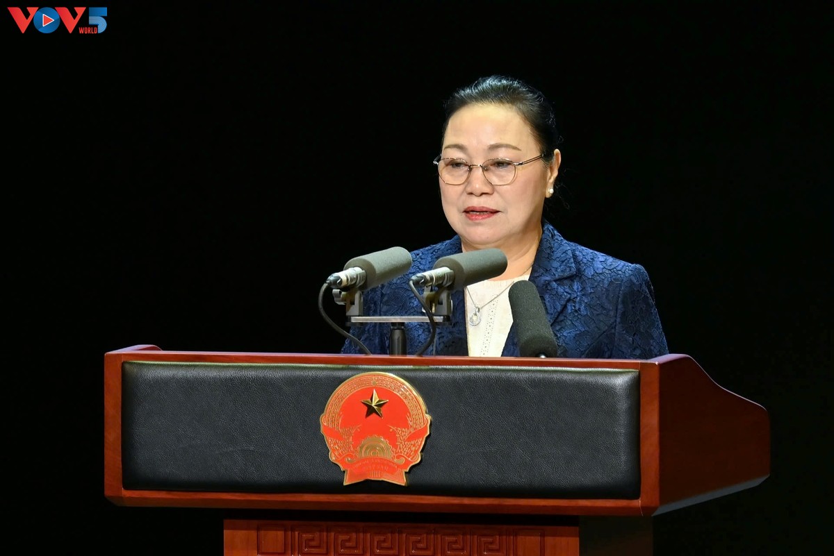ກ່ອນໜ້ານັ້ນ, ຕອນຄ່ຳວັນທີ 26 ພະຈິກ, ຢູ່ ຮ່າໂນ້ຍ, ສະຖານທູດ ລາວ ປະຈຳ ຫວຽດນາມ ໄດ້ຈັດງານລ້ຽງຢ່າງສົມກຽດເນື່ອງໃນໂອກາດສະເຫຼີມສະຫຼອງ 50 ປີແຫ່ງວັນສະຖາປະນາ ສປປ.ລາວ ຄົບຮອບ 50 ປີ (02 ທັນວາ 1975 – 02 ທັນວາ 2025). ໃນບົດກ່າວປາໄສອວຍພອນບັນດາຜົນງານເຊິ່ງປະເທດ ລາວ ບັນລຸໄດ້ໃນເຄິ່ງສະຕະວັດຜ່ານມາ, ທ່ານນາງ ຫງວຽນທິແທັງ, ກຳມະການສູນກາງພັກ, ຮອງປະທານສະພາແຫ່ງຊາດ ຫວຽດນາມ, ໃຫ້ຂໍ້ສັງເກດວ່າ: