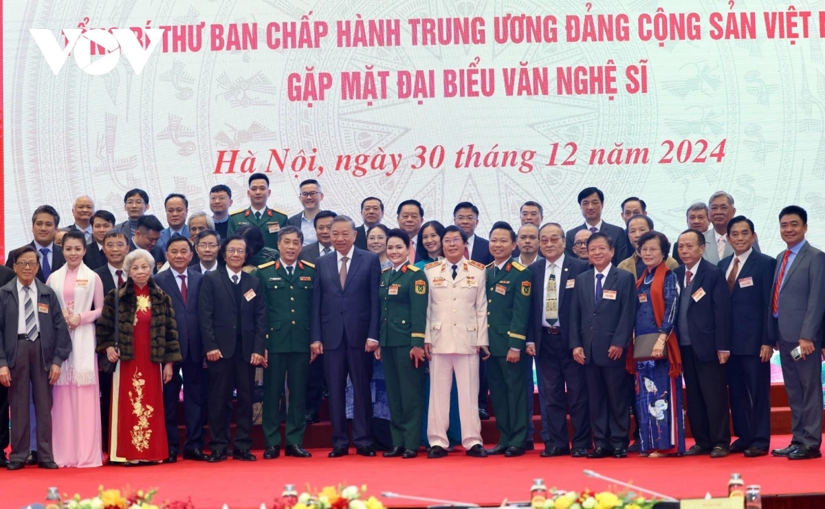ຕອນບ່າຍວັນດຽວກັນ, ທ່ານເລຂາທິການໃຫຍ່ ໂຕເລິມ ໄດ້ເຂົ້າຮ່ວມ ແລະ ເປັນປະທານງານພົບປະກັບຜູ້ແທນ 200 ທ່ານ ທີ່ເປັນຕົວແທນໃຫ້ຖັນແຖວນັກປະພັນວັນລະຄະດີ, ນັກສິລະປິນໃນທົ່ວປະເທດ, ເຊິ່ງເປັນກຳລັງຫຼັກແຫຼ່ງທີ່ປະດິດຄິດສ້າງ ແລະ ຖ່າຍທອດວັດທະນະທຳຂອງຊາດ.