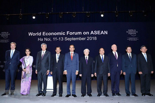 | ທ່ານເລຂາທິການໃຫຍ່ ຫວຽນຝູຈ້ອງ, ທ່ານນາຍົກລັດຖະມົນຕີ ຫງວຽນຊວັນຟຸກ, ທ່ານ Klaus Schwab ປະທານຕໍ່ຕັ້ງ WEF ແລະ ບັນດາຫົວໜ້າຄະນະຜູ້ແທນເຂົ້າຮ່ວມກອງປະຊຸມຖ່າຍຮູບລວມທີ່ກອງປະຊຸມເວທີປາໄສເສດຖະກິດໂລກກ່ຽວກັບອາຊຽນ (WEF - ASEAN) 2018. ດ້ວຍບົດບາດເປັນປະເທດເຈົ້າພາບຈັດຕັ້ງ, ຫວຽດນາມ ໄດ້ສ້າງການເຊື່ອມຕໍ່ດ້ານແນວຄິດ, ກ່ຽວກັບການປ່ຽນແປງໃໝ່ ແລະ ນັບທັງການປະດິດຄິດສ້າງລະຫວ່າງອາຊຽນ ແລະ ເວທີປາໄສເສດຖະກິດໂລກ (ພາບ: TTXVN) |