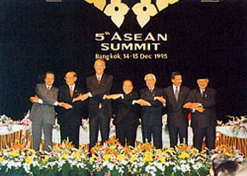 | ໃນວັນທີ 14 ແລະ 15 ທັນວາ 1995, ທ່ານນາຍົກລັດຖະມົນຕີ ວໍວັນກຽດ, ພ້ອມກັບການນຳ 6 ປະເທດສະມາຊິກອື່ນຂອງອາຊຽນ ເຂົ້າຮ່ວມກອງປະຊຸມຂັ້ນສູງຄັ້ງທີ 5 ຂອງກຸ່ມ, ເຊິ່ງດຳເນີນຢູ່ບາງກອກ, ປະເທດໄທ. (ພາບ: Chinhphu.vn) |