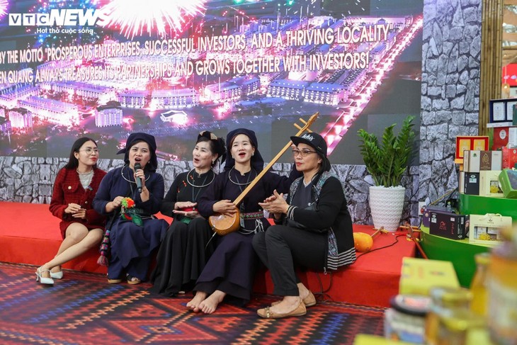 | ທ່າມກາງຮ້ານວາງສະແດງສິນຄ້າທີ່ທັນສະໄໝນັບພັນຮ້ານ, ເຂດວາງສະແດງຂອງບັນດາແຂວງພູສູງທາງທິດເໜືອຄື ເຊີນລາ, ກາວບັງ, ລາຍເຈົາ ຫຼື ລາວກາຍ ກໍດຶງດູດແຂກທ່ອງທ່ຽວເປັນຈຳນວນຫຼວງຫຼາຍ. ພາບ: VTC News |