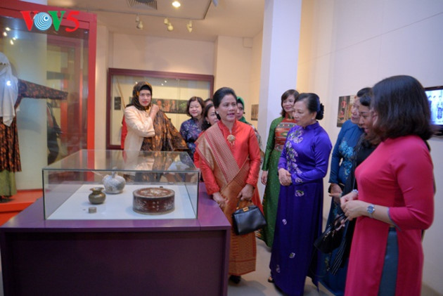 ທ່ານນາງ Iriana Joko Widodo ມີຄວາມປະທັບໃຈຕໍ່ຮູບພາບ ແລະ ວັດຖຸພັນຂອງບັນດາແມ່ຍິງ, ນັກຮົບປະຕິວັດຫວຽດນາມຄື: ທ່ານນາງ ຫງວຽນທິມີນຄາຍ, ຮ່າທິເກວ..