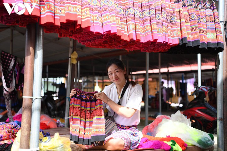 | ສິ້ນທີ່ວາງຂາຍຢູ່ຕະຫຼາດນັດສ່ວນຫຼາຍໂດຍແມ່ນ ແມ່ຍິງຊາວເຜົ່າມົ້ງຕັດຫຍິບ. |