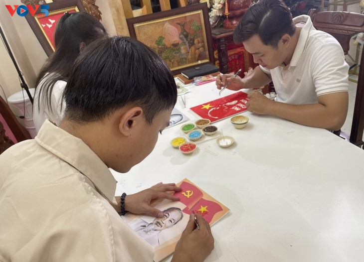 ຂິວເຕິນບິວແມ່ນຜູ້ທີ່ມີຊື່ສຽງໃນວົງການວິຈິດຕະກຳພາບເຂົ້າສານທີ່ນະຄອນເກິ່ນເທີ. ເນື່ອງໃນໂອກາດລະນຶກ 132 ປີ ແຫ່ງວັນຄ້າຍວັນເກີດປະທານໂຮ່ຈີມິນຄືວັນທີ 19 ພຶດສະພາ, ທ້າວຂິວເຕິນບິວ ໄດ້ສະເໜີຕໍ່ຜູ້ຊົມຊຸດພາບເຂົ້າສານ “ລຸງໂຮ່ ທີ່ແສນເຄົາລົບຮັກ” ດ້ວຍຄວາມສຸມຈິດສຸມໃຈຂອງຕົນ.