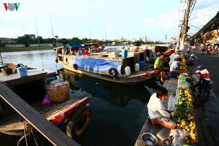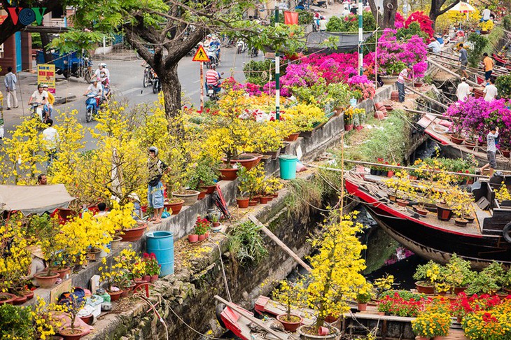 | ບັນດາກ່ຳປັນລຳເຫຼົ່ານີ້ແມ່ນມາຈາກບັນດາແຂວງທາງພາກໃຕ້ຫວຽດນາມ ເປັນຕົ້ນແມ່ນ ລອງອານ, ຕ່ຽນຢາງ, ເບັ໊ນແຈ… ຂົນໝາກໄມ້, ດອກໄມ້ຊະນິດຕ່າງໆມາຂາຍຢູ່ນະຄອນໂຮ່ຈີມິນ |