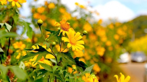 (VOVWORLD) - ຮອດຍາມທ້າຍລະດູໃບໄມ້ຫຼົ່ນ, ເມື່ອສາຍລົມຂອງຕົ້ນລະດູໜາວເລີ່ມພັດເຂົ້າມາ, ດອກຕາເວັນປ່າ ກໍພາກັນເບັ່ງບານໃນທົ່ວທຸກເສັ້ນທາງອ້ອມຈອມພູເຂົາໄຟ ຈືດັງຢາ, ອັນໄດ້ສ້າງເປັນຮູບພາບທີ່ສວຍງາມດັ່ງໃນຝັນ.