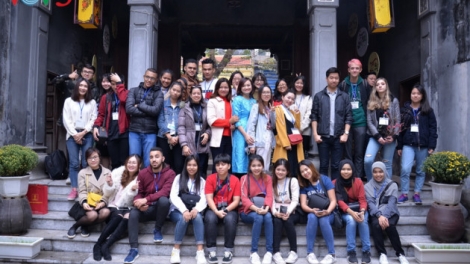 (VOVWORLD) - ໃນບັນຍາກາດອົບອຸ່ນຂອງລະດູບານໃຫມ່ພວມວຽນມາອີກວາລະຫນຶ່ງ, ມີນັກສຶກສາຕ່າງປະເທດ ກວ່າ 40 ຄົນ ໄດ້ເຂົ້າຮ່ວມລາຍການຕ້ອນຮັບບຸນປີໃຫມ່ປະຈຳຊາດ 2019 ຈັດຂຶ້ນຢູ່ຖະຫນົນ ຟຸ່ງຮືງ ນະຄອນ ຮ່າໂນ້ຍ ຮູ້ສຶກເບີກບານມ່ວນຊື່ນ ແລະ ຈັບອົກຈັບໃຈເມື່ອໄດ້ຊົມບັນດາພາບພື້ນເມືອງທີ່ເປັນເອກະລັກສະເພາະຂອງຫວຽດນາມ ກໍ່ຄືໄດ້ຊົມສີສັນຫລາກຫລາຍຂອງດອກໄມ້ນາໆຊະນິດໃນລະດູບານໃຫມ່ຢູ່ຕະຫລາດດອກໄມ້ບຸນເຕັດຂອງຮ່າໂນ້ຍ. ທັງໝົດເຫລົ່ານັ້ນ ໄດ້ເຮັດໃຫ້ພວກເພື່ອນມີຄວາມປະທັບໃຈກ່ຽວກັບວັດທະນະທຳຕ້ອນຮັບບຸນເຕັດຂອງຊາວຫວຽດນາມ.