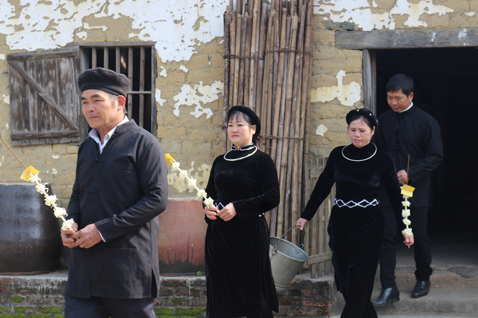 ບັນດາສະມາຊິກໃນຄອບຄົວຊາວເຜົ່າໄຕ ເຕົ້າໂຮມກັນໃນພາເຂົ້າຕ້ອນຮັບປິໃໝ່ (ພາບ: VOV) |