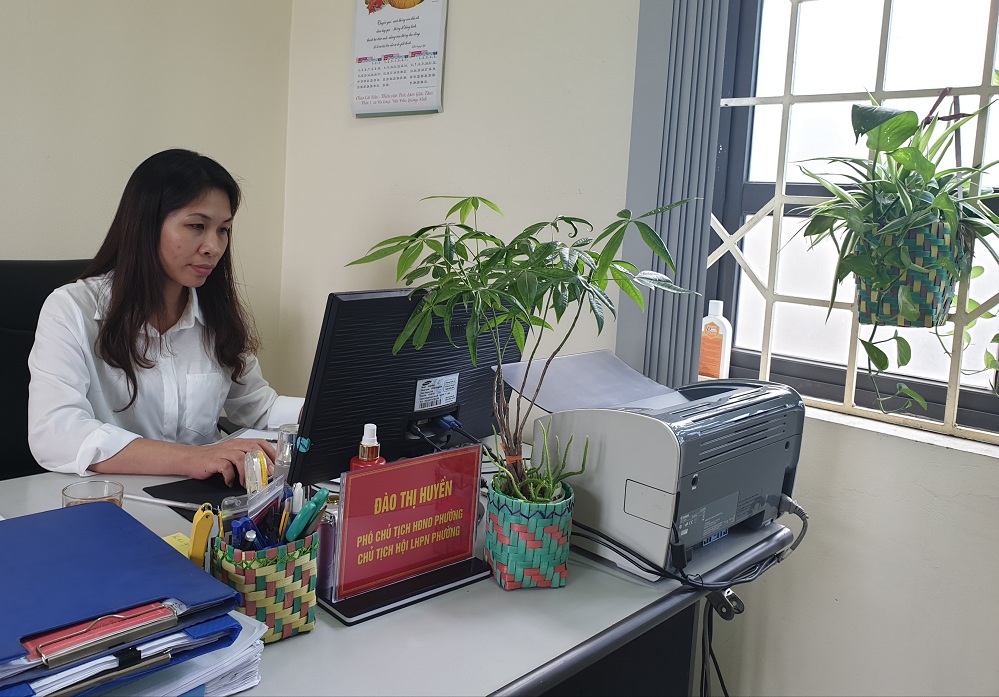 ຫ້ອງເຮັດວຽກຂອງນາງ ດ່າວທິຮວ່ຽນ ປະທານສະມາຄົມແມ່ຍິງ ຕາແສງ ຮ່າຈຸງ ນະຄອນ ຮະລອງ |