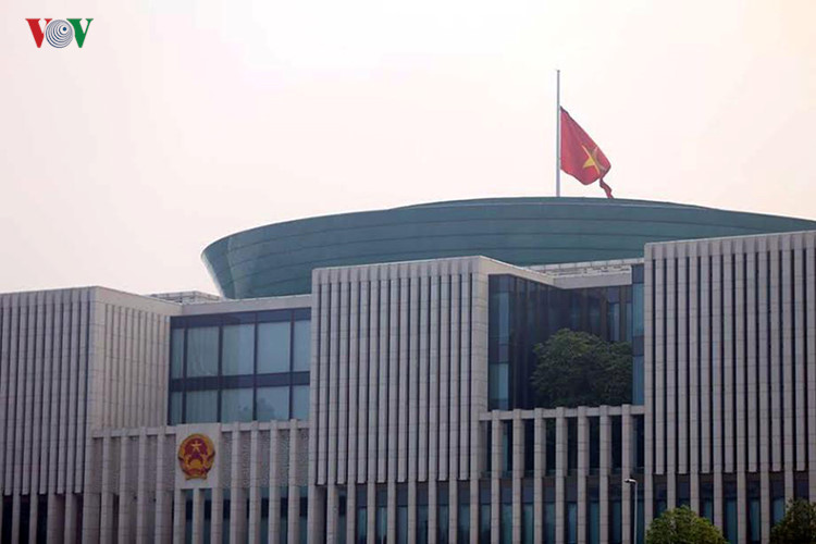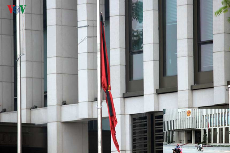 ຄັນທຸງທີ່ຖືກເອົາລົງເຄິ່ງເສົາຢູ່ຫໍສະພາແຫ່ງຊາດ