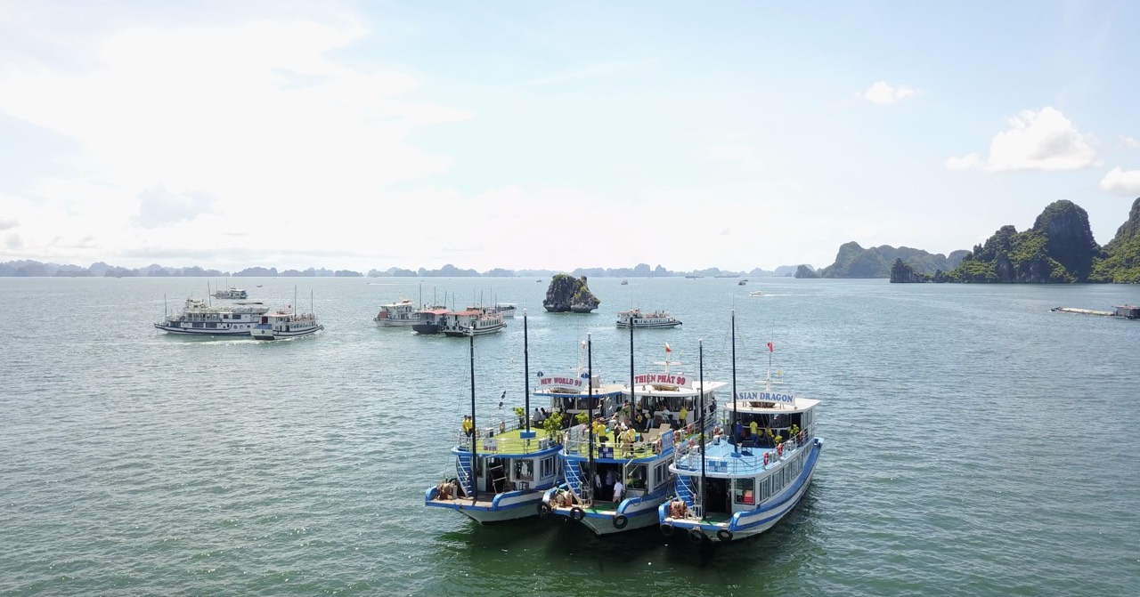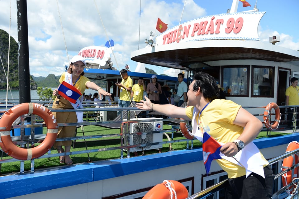 ບັນດານັກແຂ່ງຂັນຂີ່ເຮືອໄປຢ້ຽມຊົມອ່າວຮ້າລອງ |