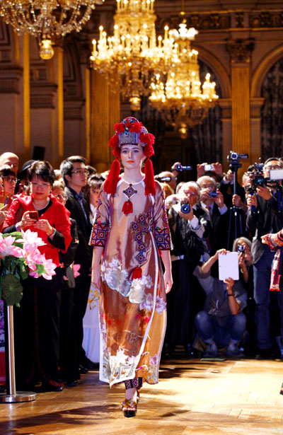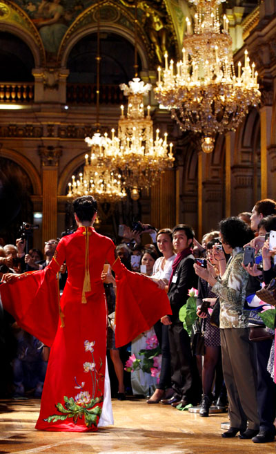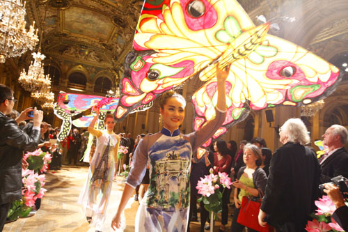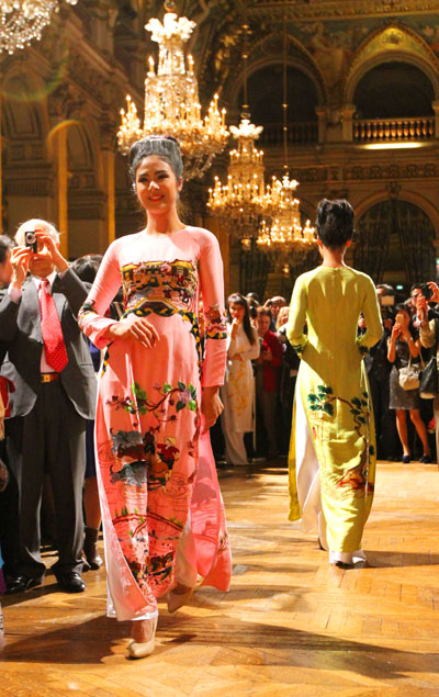 ການສະແດງຊຸດເຊື້ອຍາວຂອງນາງງາມຫວຽດນາມທີ່ສຳນັກງານບໍລິຫານຂອງຝຣັ່ງ
