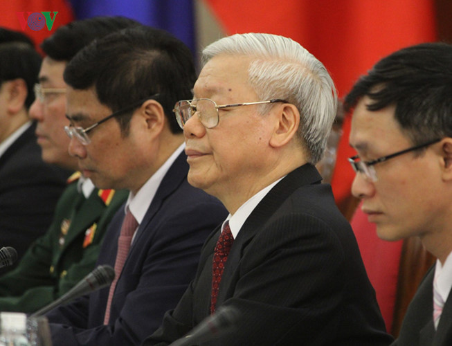 | ທ່ານເລຂາທິການໃຫຍ່ຫງວຽນຟຸຈ້ອງ ເຈລະຈາກັບທ່ານເລຂາທິການໃຫຍ່ ບຸນຍັງ ວໍລະຈິດ |