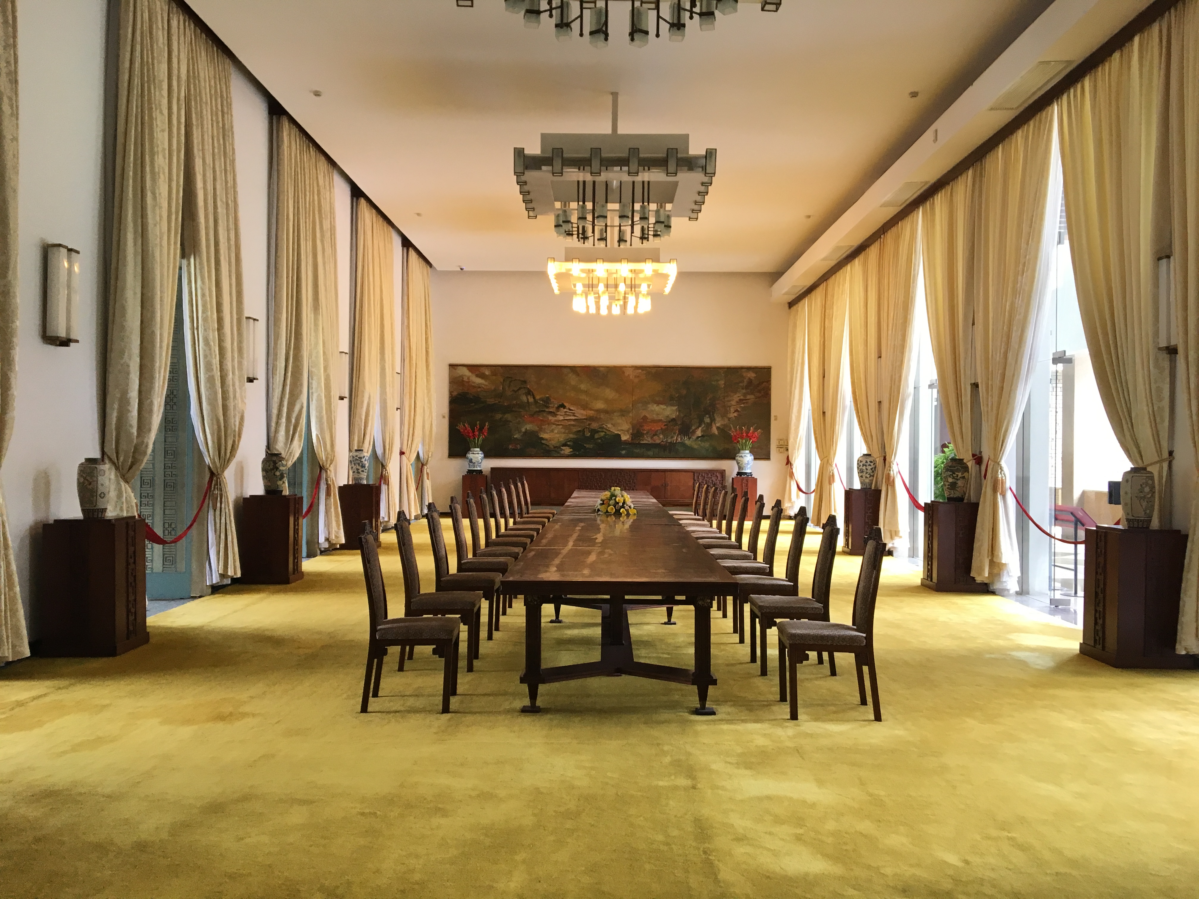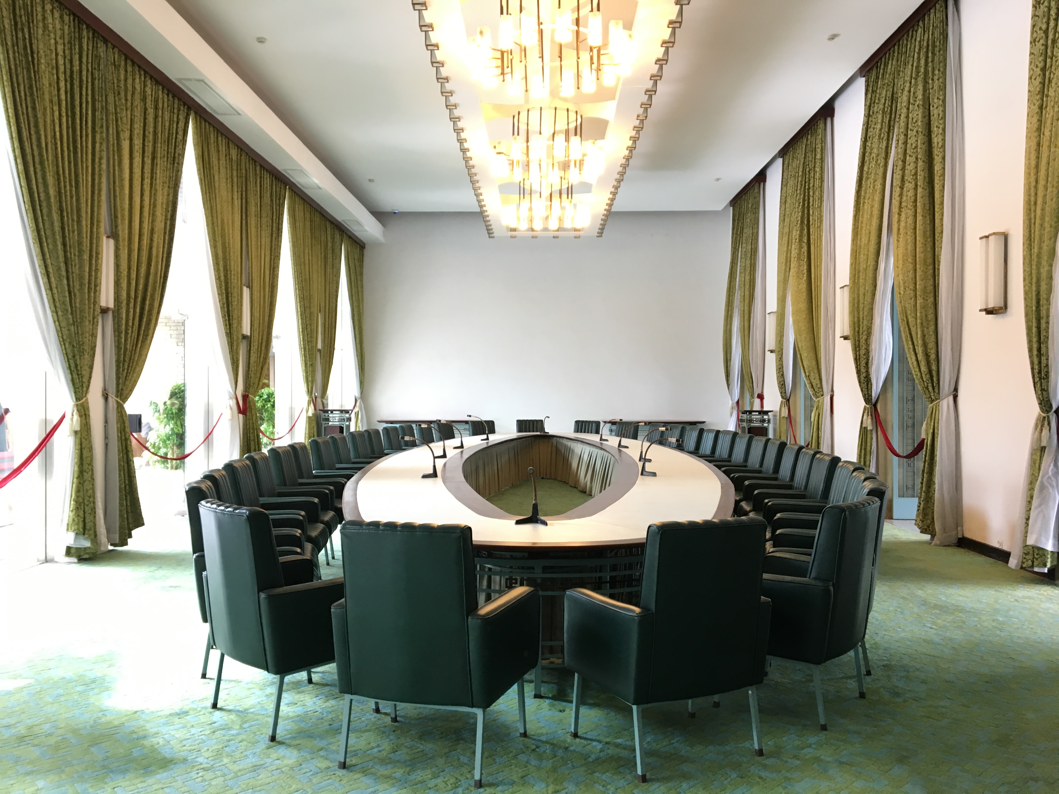ພິເສດ ໃນທຳນຽບເອກະລາດ ມີຫລາຍຫ້ອງໄດ້ຮັບການປະດັບປະດາຕາມສະຖາປັດຕະຍະກຳທີ່ແຕກຕ່າງກັນ ອີງຕາມຈຸດປະສົງຂອງການນຳໃຊ້. ໃນພາບດັ່ງກ່າວແມ່ນຫ້ອງປະຊຸມຄະນະລັດຖະບານຂອງລະບອບເກົ່າ.