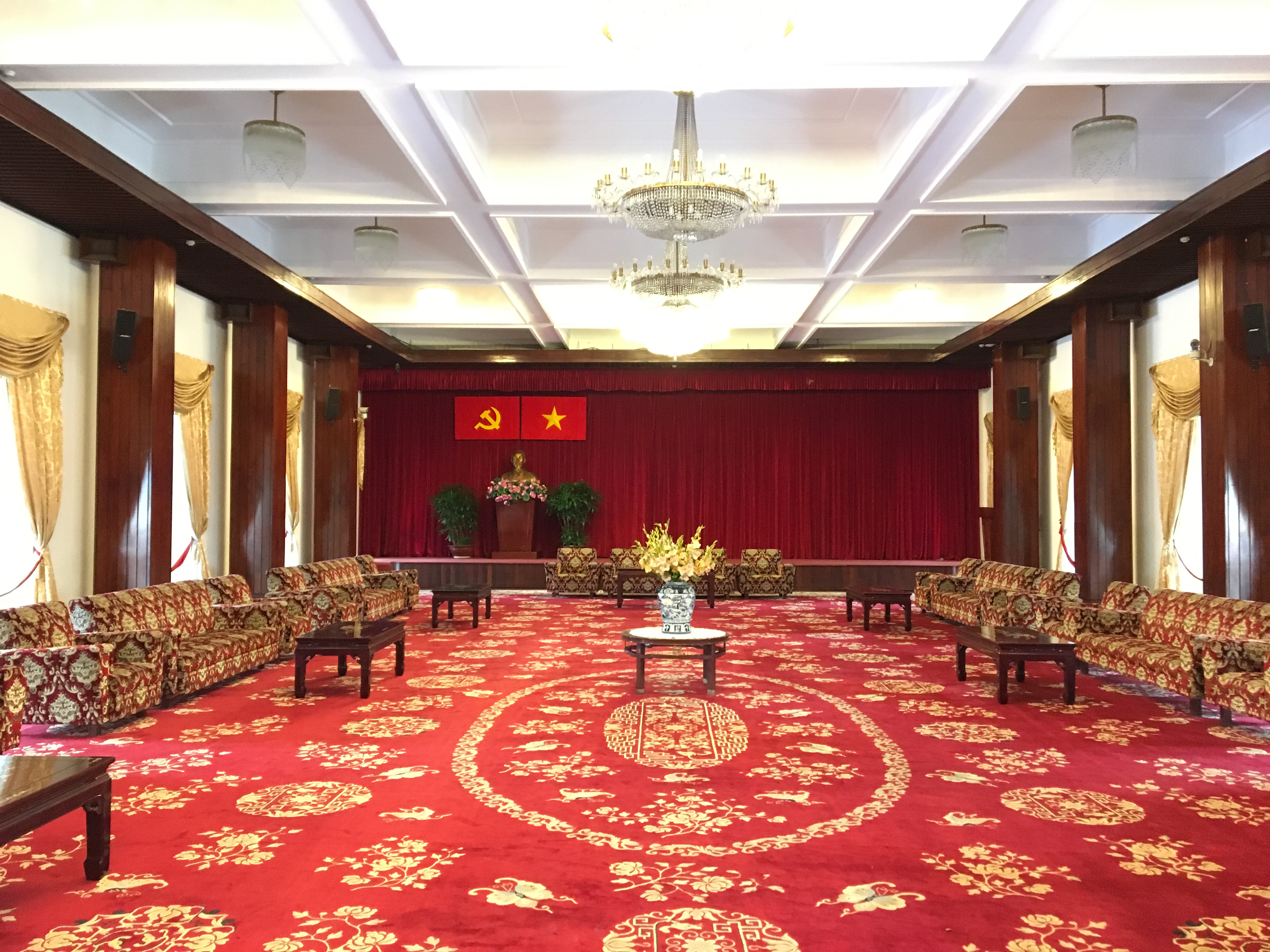 ຫ້ອງໂຖງສາມາດບັນຈຸແຂກໄດ້ 500 ຄົນ, ແມ່ນແຫ່ງຈັດຕັ້ງການກອງປະຊຸມ, ງາມລ້ຽງ, ການສະເໜີຕົວຄະນະລັດຖະບານ. ເດືອນ 11/1975 ຢູ່ທີ່ນີ້ ໄດ້ດຳເນີນກອງປະຊຸມເຈລະຈາດ້ານການເມືອງ ປຶກສາຫາລືບັນດາບັນຫາເອກະພາບ 2 ພາກໃຕ້-ເໜືອ.