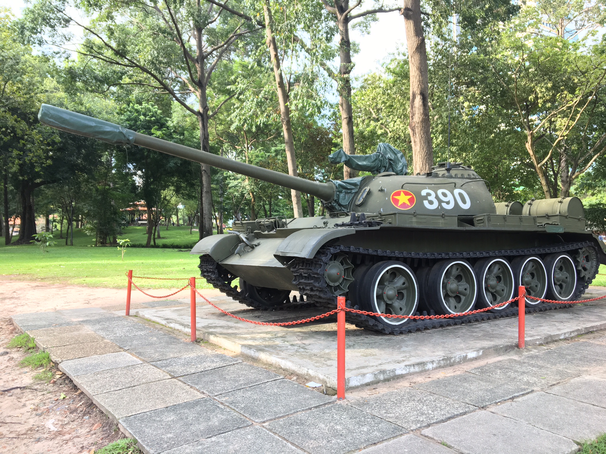 ລົດຖັງທີ່ຍັງເຫຼືອມີໝາຍເລກ 390 ແມ່ນລົດທີ່ຕຳໃສ່ປະຕູໂຂງທຳນຽບເອກະລາດໃນເວລາ 11 ໂມງ 30 ນາທີໃນວັນທີ 30/04/1975. ຮ້ອຍຕີ ບູຍກວາງເທີ້ນ - ຫົວໜ້າກອງຮ້ອຍຜູ້ບັນຊາລົດຖັງ 843 ໄດ້ຊັກທຸງແນວໂຮມປົດປ່ອຍຊາດພາກໃຕ້ ຫວຽດນາມ ສິ້ນສຸດບັ້ນຮົບ ໂຮ່ຈີມິນ.