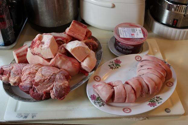 1. ​ເຂົ້າປຸ້ນ 1 kg, ຊີ້ນ​ງົວ : 300 g , ຂາ​ໝູ 1 ອັນ, ກະດູກ 1 kg, ລູກ​ຊີ້ນ​ງົວ : 200 g, ຫົວ​ສິງ​ໄຄ : 6 ຫົວ, ຂີງ: 50 g , ພ້ອມ​ກັບ​ຜັກຫອມ, ຫົວຜັກທຽມ, ໝາກ​ເຜັດ