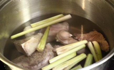 3. ກ່ອນ​ອື່ນ ຕ້ອງ​ເອົາ​ຫົວ​ສິງ​ໄຄ ​ແລະ ຂີງ ພ້ອມ​ກັບ​ກະດູກ​ໝູ ​ແລະ ຊີ້​ຂາ​ໝູ​ໃສ່​ໝໍ້​ອົບ, ​ແລະ​ໃຕ້​ໄຟ​ພໍດີ, ຖ້າ​ຮອດ​ເວລາ​ຊີ້ນ​ອ່ອນ​ໄປ ຈຶ່ງ​ໄດ້