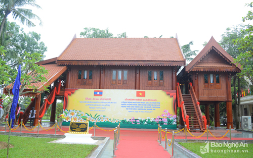 ເຮືອນທີ່ລະນຶກປະທານ ໂຮ່ຈີມິນ ທີ່ໄດ້ອອກແບຕາມສະຖາປັດຕະຍາກຳເຮືອນຮ້ານ ລາວ (ພາບ: baonghean.vn)