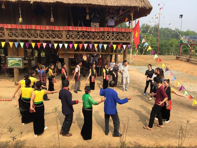 ແຂກທ່ອງທ່ຽວເຊື່ອມຕົວກັບວັດທະນະທຳຂອງເຜົ່າຜູ້ໄທ ຢູ່ບ້ານວັດທະນະທຳ ແລະ ການທ່ອງທ່ຽວບັນດາເຜົ່າ (ພາບ: dangcongsan.vn) |