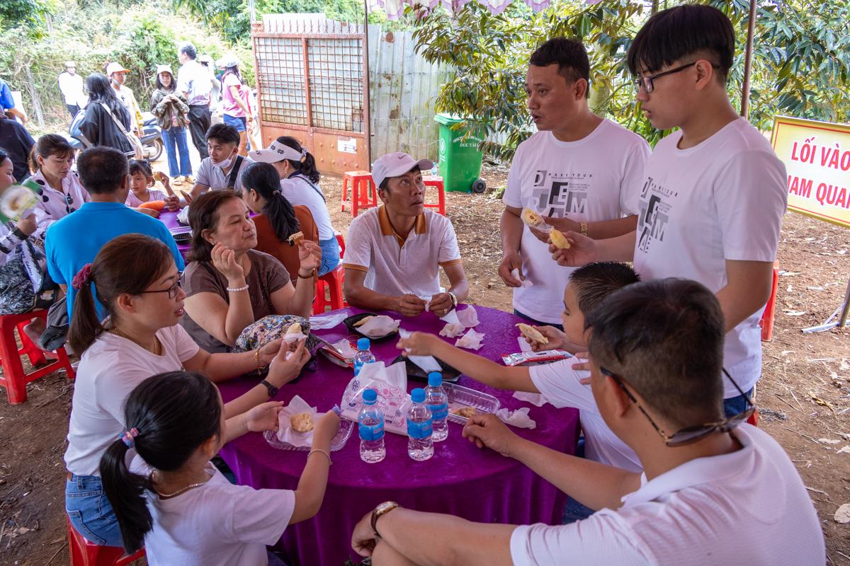 ແຂກທ່ອງທ່ຽວໄດ້ຊີມທຸລຽນໂດຍບໍ່ເສຍຄ່າຢູ່ໃນສວນ (ພາບ: baodaklak.vn) |