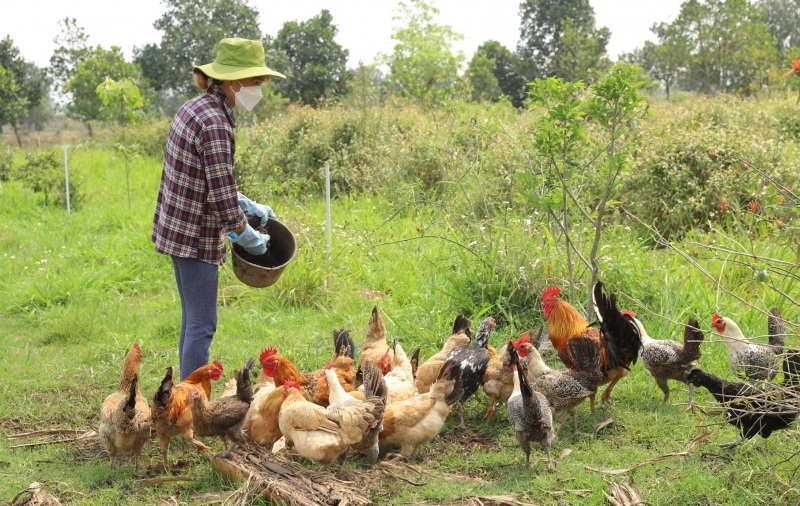ຟາມລ້ຽງປູກສ້າງລວມຂອງເອື້ອຍ ບຸຍທິລິ ແລະ ອ້າຍ ຫງວຽນວັນເວືອງ ກ້ວາງ 7.000 ຕາແມັດ, ຢູ່ບ້ານ ອານລາກ 2, ຕາແສງ ຕຽນຝອງ, ເມືອງ ວິງບາວ, ຫາຍຟ່ອງ. ນີ້ແມ່ນຮູບແບບສົມທົບການປູກຕົ້ນໄມ້, ສັດລ້ຽງຫຼາຍຊະນິດ ແຕ່ຍາມໃດກໍ່ເຄົາລົບຫຼັກການ: ລະບົບລ້ຽງປູກແບບຄົບວົງຈອນ, ຫຼຸດຜ່ອນລາຍຈ່າຍສົ້ນເຂົ້າຢ່າງສູງສຸດ ແລະ ບໍ່ນຳໃຊ້ຢາ ຫຼື ຝຸ່ນເຄມີ ເພື່ອສ້າງຜະລິດຕະພັນປອດສານພິດ, ປອດໄພ.