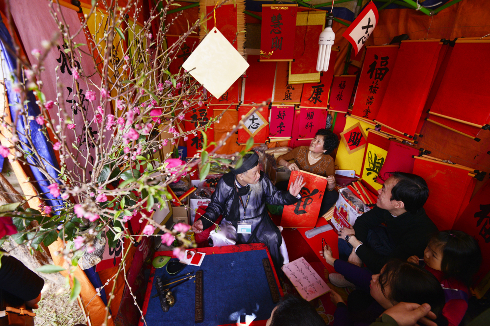 ຜູ້ຂຽນຕົວໜັງຫວຽດເດີມ ແມ່ນອາຈານ ແລະ ຜູ້ຂໍຕົວໜັງສືຕາມທຳມະດາແມ່ນບັນດາເຈົ້າຂອງເຮືອນ ມາຂໍຕົວໜັງສືເພື່ອພາວະນາຂໍໃຫ້ປະສົບແຕ່ສິ່ງທີ່ດີທີ່ງາມໃນປີໃໝ່ ແລະ ພິເສດແມ່ນມີຄວາມປາດຖະໜາຢາກມີຄວາມໂຊກດີໃນການຮ່ຳຮຽນ, ເສັງໄດ້ຄະແນນດີ. ນັກຂ່າວ ທູຮັ່ງ ໄດ້ແນະນຳບົດຂຽນທີ່ພາດຫົວຂໍ້ວ່າ “ຮີດຄອງປະເພນີຂໍຕົວໜັງສືຍາມຕົ້ນປີໃໝ່ຂອງຊາວຫວຽດນາມ”.