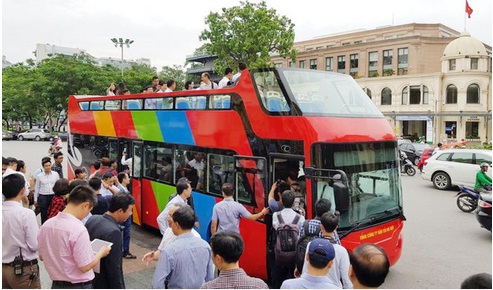 ລົດບັດທ່ອງທ່ຽວ 2 ຊັ້ນມີສີແດງງາມຕາ, ລົດບັດໄດ້ເລີ່ມເຄື່ອນໄຫວນັບແຕ່ເວລາ 9 ໂມງເຊົ້າຮອດ 17 ໂມງແລງ, 30 ນາທີຈຶ່ງມີຖ້ຽວໜຶ່ງ. ສະຖານທີ່ຮັບແຂກທຳອິດແມ່ນຢູ່ໜອງ ຮ່ວານກ໊ຽມ, ລົດບັດ ປະເພດນີ້ຈະຈອດຢູ່ 30 ສະຖານທີ່ຄື: ຖະໜົນແທງນຽນ, ວັດມ໊ຽວ - ກວດຕື້ຢ໊າມ; ຫຼີເທື່ອງກຽດ… ແລະ ສິ້ນສຸດຢູ່ສະຖານທີ່ຮັບແຂກ (ຖ້າຫາກວ່າແມ່ນວັນພັກ ສະຖານທີ່ເລີ່ມເຄື່ອນໄຫວຢູ່ໂຮງລະຄອນໃຫຍ່ຮ່າໂນ້ຍ). ຢູ່ແຕ່ລະສະຖານທີ່, ແຂກທ່ອງທ່ຽວສາມາດເລືອກເຟັ້ນບ່ອນແວຢ້ຽມຊົມຕາມໃຈຫຼື ໄປຕໍ່ເລີຍ, ມັນບໍ່ຈຳກັດດ້ານເວລາ, ພາຍຫຼັງສິ້ນສຸດການຢ້ຽມຢາມສະຖານທີ່ໃດໜຶ່ງ, ແຂກທ່ອງທ່ຽວຈະໄດ້ຂຶ້ນລົດຖ້ຽວຕໍ່ໄປ ເພື່ອສືບຕໍ່ລາຍການເດີນທາງຢ້ຽມຢາມຂອງຕົນ. ນີ້ແມ່ນລາຍການທ່ອງທ່ຽວໃໝ່ອ່ຽມ, ທັງແມ່ນຍານພາຫະນະປະຈຳທາງທັງແມ່ນຜະລິດຕະພັນທ່ອງທ່ຽວທີ່ໃໝ່ອ່ຽມ. ທ່ານ ຫງວຽນຮ່ວາງຫາຍ, ຜູ້ອຳນວຍການສູນຄຸ້ມຄອງ ແລະ ບໍລິຫານຄົມມະນາຄົມຕົວເມືອງ ຮ່າໂນ້ຍ, ໃຫ້ຮູ້ວ່າ: