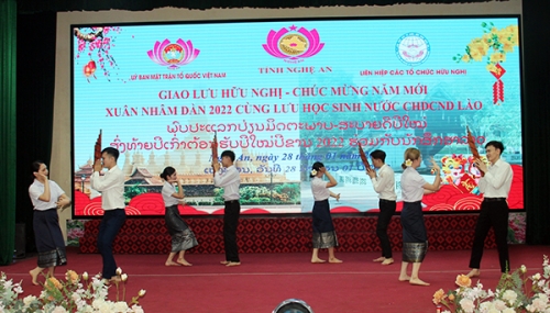 ນັກສຶກສາລາວ ສະແດງສິລະປະໃນລາຍການພົບປະແລກປ່ຽນມິດຕະພາບ ສະບາຍດີປີໃໝ່ (ພາບ: nghean24h.vn) |