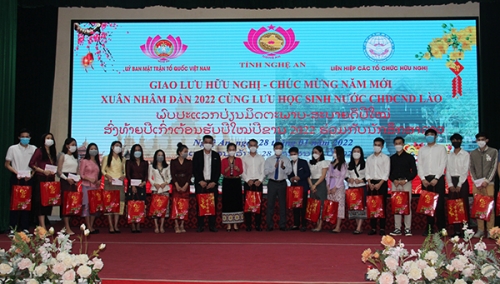 ບັນດາຜູ້ແທນມອບຂອງຂວັນປີໃໝ່ໃຫ້ແກ່ນັກສຶກສາລາວ (ພາບ: nghean24h.vn) |