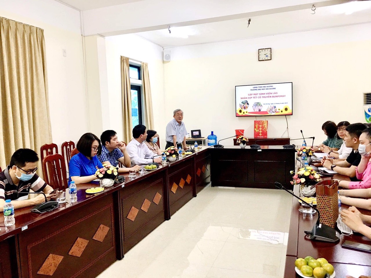 ທ່ານ ດ້າວຮ້າງ ກ່າວຄໍາເຫັນໃນການພົບປະສັງສັນກັບນັກສຶກສາ ລາວ ເນື່ອງໃນໂອກາດບຸນປີໃໝ່ລາວ (ພາບ: ມະຫາວິທະຍາໄລ ຫາຍເຢືອງ) |
