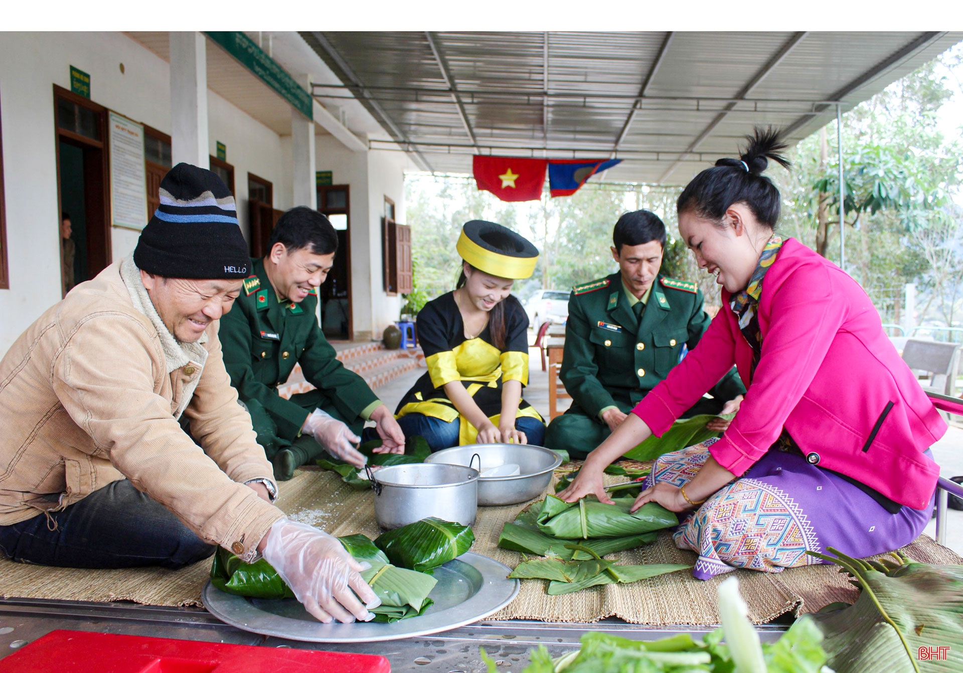 ສຸກສາລາທະຫານ ທົ່ງແປ ພົ້ນເດັ່ນຂຶ້ນດ້ວຍທຸງຊາດຂອງປະເທດ ລາວ - ຫວຽດນາມ (ພາບ: VOV) |