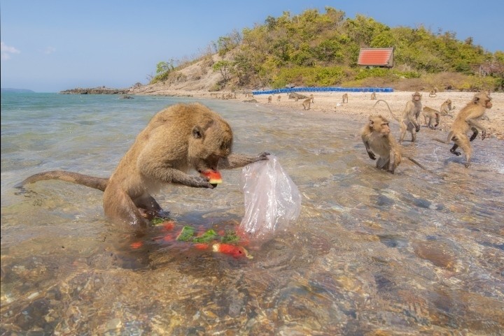 “ຮູບຖ່າຍຂອງຂ້າພະເຈົ້າແມ່ນຮູບພາບທະເລໃນເກາະ Samae San ຫຼືຍັງເອີ້ນວ່າເກາະເປັດໃນແຂວງ ຊົນບູຣີ. ເຖິງວ່າໄດ້ເອີ້ນວ່າເກາະເປັດກໍ່ຕາມ ແຕ່ຢູ່ທີ່ນີ້ບໍ່ມີເປັດ, ແຕ່ມີໂຕລີງນັບຮ້ອຍໂຕໄດ້ດຳລົງຊີວິດ. ແຂກທ່ອງທ່ຽວໄດ້ແກ່ວງຖົງຢ່າງມີໝາກໄມ້ໃຫ້ລີງກິນຄື: ໝາກໂມ, ໝາກກ້ວຍ... ແຕ່ວ່າ, ການກະທຳດັ່ງກ່າວເຮັດໃຫ້ທະເລນັບມື້ນັບມີມົນລະພິດກ່ວາອີກ ຍ້ອນຖົງຢ່າງຖືກຖິ້ມລົງທະເລ, ຖົງຢາງລະລາຍຍາກ. ຂ້າພະເຈົ້າຫວັງວ່າ ທຸກຄົນອາດຈະຖິ້ມໝາກໄມ້ລົງທະເລ, ລີງຈະເອົາກິນເອງ. ບໍ່ຄວນຖິ້ມທັງຖົງຢາງມີໝາກໄມ້ລົງທະເລ, ນັ້ນແມ່ນວິທີໜຶ່ງທຳລາຍສິ່ງແວດລ້ອມທະເລ. ຂ້າພະເຈົ້າຢາກສົ່ງສານດັ່ງກ່າວເຖິງແຂກທ່ອງທ່ຽວເມື່ອມາທ່ຽວຢູ່ເກາະແຫ່ງນີ້”.