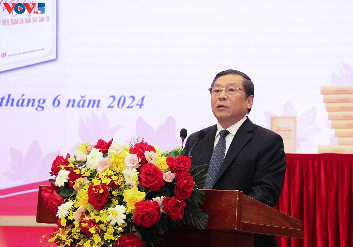 ປຶ້ມ ກໍ່ສ້າງ ແລະພັດທະນາພື້ນຖານວັດທະນະທຳທີ່ເຂັ້ນຂົ້ນໄປດ້ວຍສີສັນຊາດຂອງທ່ານເລຂາທິການໃຫຍ່ ຫງວຽນຝູຈ້ອງ. ພາບ: VOV |