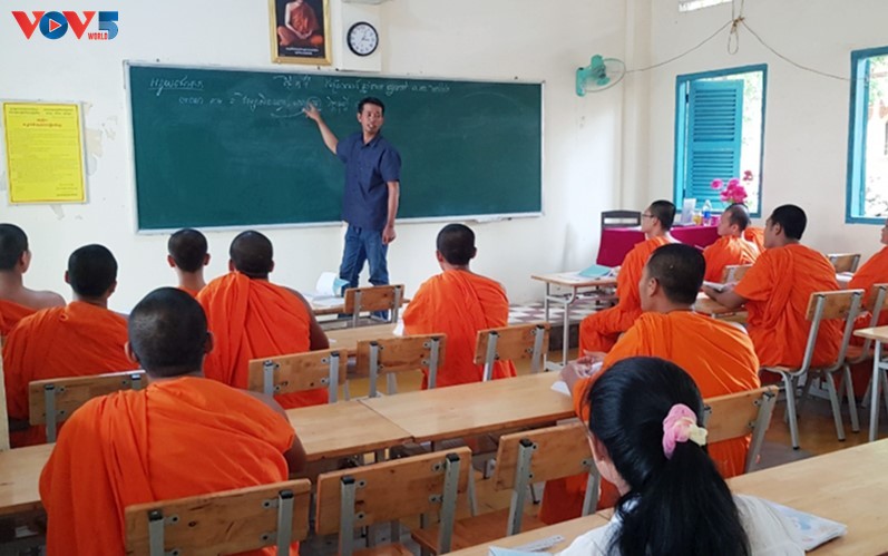 “ສົກຮຽນໜຶ່ງກໍ່ເຄີຍດຳເນີນໃນເວລາ 9 ເດືອນ. ແຕ່ລະເດືອນກໍ່ພັກ 4 ວັນ.ຮຽນ 10 ວິຊາ, ເນື້ອໃນຮຽນວິຊາພາສາເຜົ່າຂະແມກໍ່ນຳໃຊ້ຕາມຫຼັກສູດການສອນຄືດັ່ງມະຫາວິທະຍາໄລ. ໜຶ່ງວິຊາຮຽນ 4 ຊົ່ວໂມງ.ວິຊາຂຽນທວາຍຮຽນຈາກ ປໍ1 ຫາ ມໍ7, ວິຊາພາສາເຜົ່າຂະແມ, ຄະນິດສາດ, ວັນນະຄະດີ, ພາສາບາລີ...”