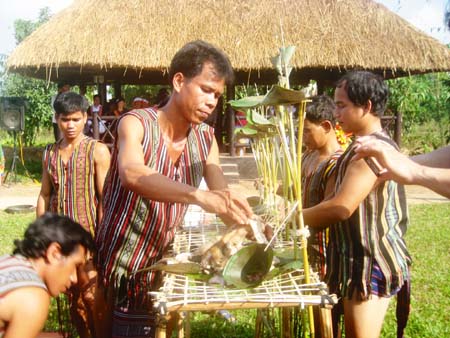 “ໃນຍາມຕົ້ນປີ, ກ່ອນທີ່ຫໍ່ເຂົ້າຕົ້ມ, ຊາວເຜົ່າ H're ເຄີຍຈັດພິທີບູຊາຊັບຊ້ອນເຮືອນ. ພິທີນີ້ງ່າຍດາຍທີ່ສຸດ, ພຽງແຕ່ມີໄຂ່ໄກ່ ແລະ ໄກ່ຜູ້, ດ້ວຍຄວາມໝາຍລົບລ້າງສິ່ງບໍ່ຈົບບໍ່ງາມໃນປີເກົ່າ ແລະ ຕ້ອນຮັບສິ່ງທີ່ດີງາມໃນປີໃໝ່, ເພື່ອໃຫ້ທຸກຄົນໃນຄອບຄົວໄດ້ຕ້ອນຮັບບຸນປີໃໝ່ດ້ວຍຄວາມອົບອຸ່ນ ແລະ ເບີກບານມ່ວນຊື່ນ”.