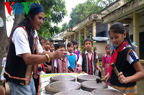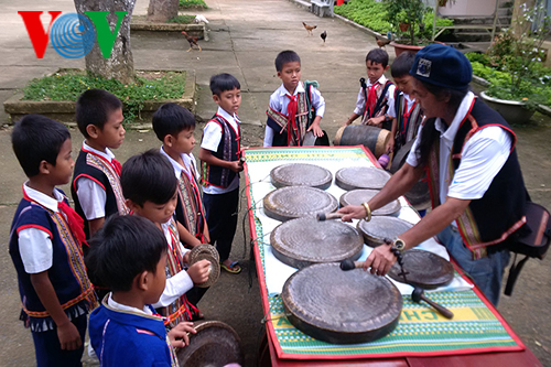 ໂຮງຮຽນປະຖົມ ດັ້ງເຈີນກົນ ຢູ່ ຕາແສງ ງອກໄບ ນະຄອນ ກອນຕູມ ມີນັກຮຽນເກືອບ 700 ຄົນ, ທັງໝົດລ້ວນແຕ່ແມ່ນລູກຫລານຂອງຊາວເຜົ່າສ່ວນຫນ້ອຍ ບານາ. ສິ່ງພິເສດ ໃນໂຮງຮຽນນີ້ ນັກຮຽນເກືອບທັງມໝົດມີຄວາມນິຍົມ ແລະ ຮູ້ຈັກຕີກອງຕີຄ້ອງ, ຟ້ອນຊວາງ. ພາຍຫລັງຊົ່ວໂມງຂຶ້ນຫ້ອງ ແລະ ໃນມື້ວັນເສົາ, ວັນອາທິດ, ສຽງກອງສຽງຄ້ອງພັດດັງກ້ອງກັນວານໄປທົ່ວເດີນໂຮງຮຽນ. ເອື້ອຍຄູ ເດົ້າທິລານ, ຫົວຫນ້າຄະນະອຳນວຍການ ໂຮງຮຽນ ໃຫ້ຮູ້ວ່າ: ຂະບວນການຕີກອງຕີຄ້ອງເຊິ່ງໂຮງຮຽນໄດ້ຮັກສາໄວ້ມາເປັນເວລາຫລາຍປີ ແລ້ວ. ຜູ້ທີ່ມີບົດບາດສຳຄັນໃນການແນະນຳ ແລະ ເຮັດໃຫ້ນັກຮຽນມີຄວາມເມົາມົວກັບສິລະປະຕີກອງຕີຄ້ອງ ນັ້ນແມ່ນນັກສິລະປະການ ອາບີວ.