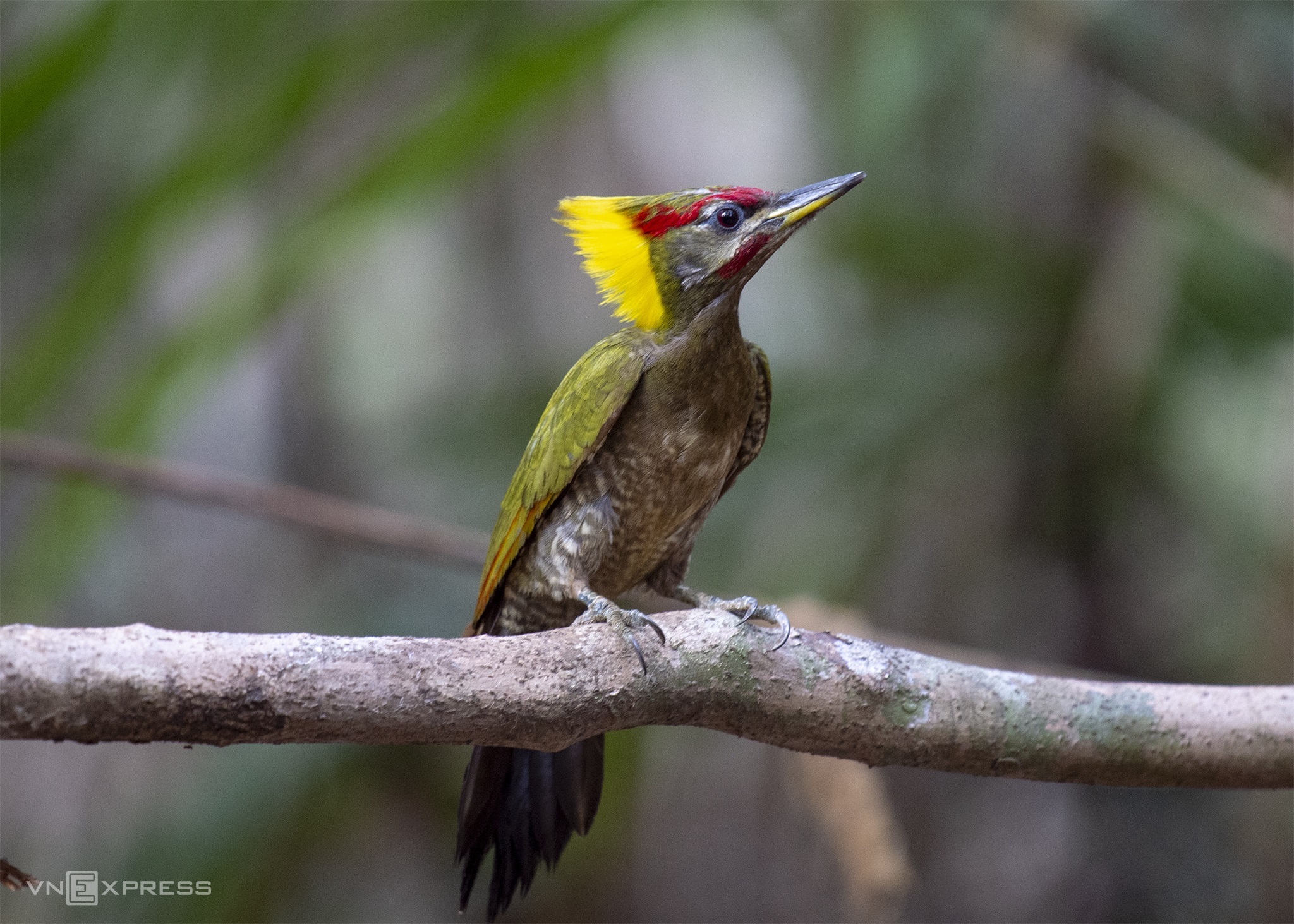 The lesser yellownape (Picus chlorolophus) is seen perching on a branch inside Cat Tien Park. It has a typical woodpecker shape. The upperparts are green apart from the bright yellow tufted nape. Its neck and breast are green and belly whitish, finely barred with green. With 351 species, accounting for about 42 percent of the total number of birds in Vietnam, including many rare species, Cat Tien is like a “birders paradise”. (Photo: Andy Nguyen) |