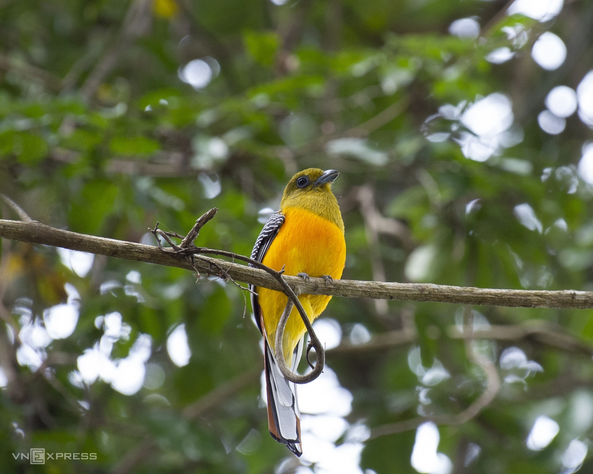 The orange-breasted trogon (Harpactes oreskios) is insectivorous and hunts from a perch. The species measures between 25-31 centimeters in length and weighs about 49-57 grams. Both sexes have orange-yellow underparts. The male has a cinnamon-brown back and yellow-green head while the female has a duller brown back and less yellow on her underparts. (Photo: Andy Nguyen) |